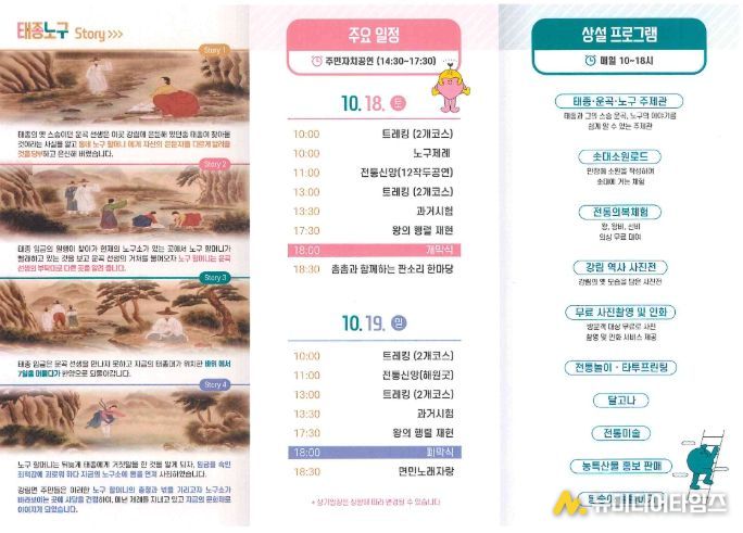 또한 ‘왕의 행렬 재현’ 프로그램에서는 태종이 강림을 방문했던 역사적 사실을 바탕으로, 주민들이 직접 참여해 왕의 행렬을 재현할 예정이다.