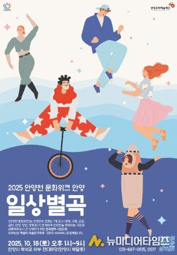 안양문화예술재단은 이번 문화위크 기간 중 10월 18일 오후 1시부터 5시까지, 박달동 박석교 하부 잔디마당에서 ‘2025 안양천 문화위크 안양 : 일상별곡’을 개최한다. 이번 행사는 만안종합사회복지관의 마을환경축제 ‘ZERO MANAN’과 공동 개최되며, 지역 내 환경문제에 심각성을 인식하고 공동대응하기 위한 친환경, 자원순환 부스가 운영된다. 부스 운영시간에는 가족 단위 방문객을 위한 상 ‘서커스 오브 안양천’ 공연과 서커스 체험 프로그램도 함께 진행된다.