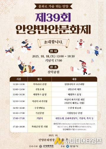 최대호 안양시장은 “한국 전통문화를 담은 콘텐츠가 세계적으로 큰 인기를 끌고 있는 만큼, 이번 행사가 우리 전통문화의 가치를 되새기는 뜻깊은 시간이 되길 바란다”고 말했다.