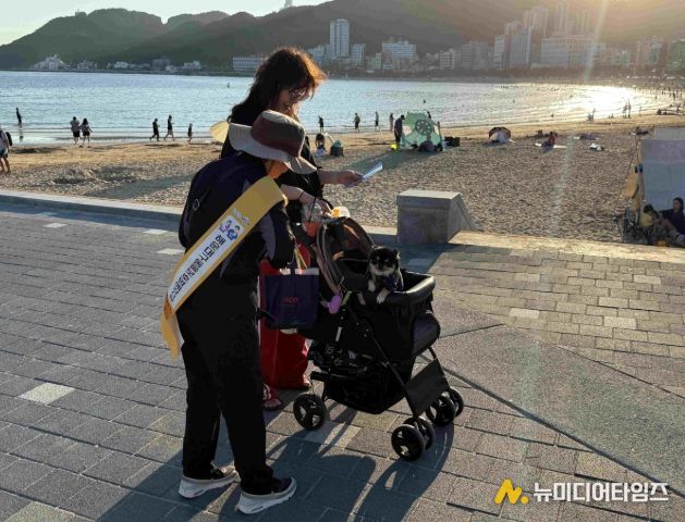 해운대구는 지난 11일, 반려동물 목줄 미착용 등 펫티켓 관련 민원이 잦은 송정 해수욕장에서 민·관 합동 캠페인을 실시했다.