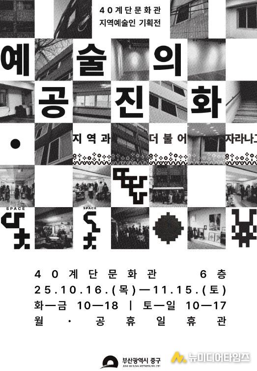 부산광역시 중구는 10월 16일부터 11월 15일까지 40계단문화관 6층 전시실에서 지역예술인 기획전'예술의 공진화, 지역과 더불어 자라나고'를 개최한다.
