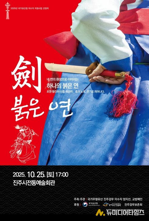 경상국립대학교(GNU·총장 권진회) 학술연구교수이자 국가무형유산 진주검무 이수자인 양지선 대표가 이끄는 ‘교방예인’이 10월 25일 오후 5시 진주시전통예술회관에서 창작무용극 ‘劍 붉은 연’을 선보인다. 이 작품은 2025년 국가유산청 이수자 지원사업 선정작으로, 고려부터 현대까지 시대를 초월한 네 명의 기생 이야기를 춤·노래·연기로 풀어낸 창작 춤 서사극이다.