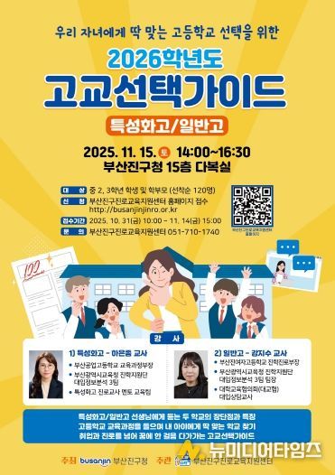 부산 부산진구는 11월 15일 토요일 오후 2시 구청 15층 다복실에서 ‘2026학년도 고교선택가이드 현장 설명회’를 개최한다고 밝혔다.