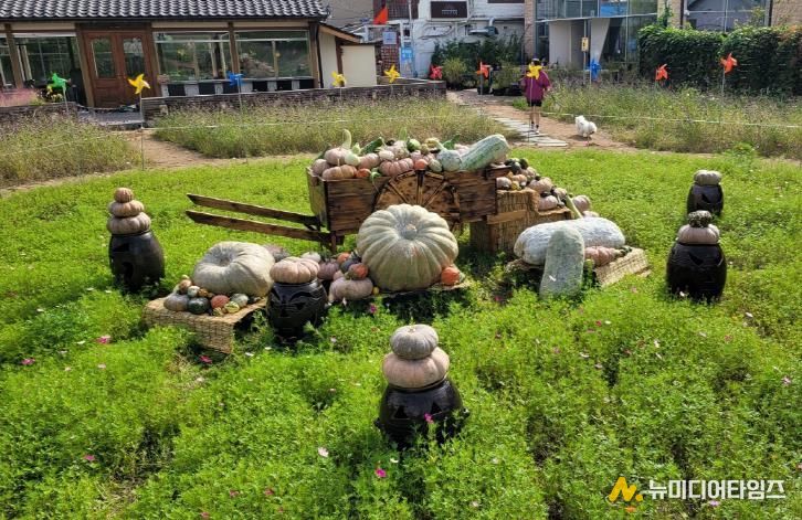 올해 봄부터 수선화, 버들마편초 등 계절초화를 심어 조성한 북지터 일원에 포토존을 마련됐다. 호박을 활용한 다양한 조형물과 장식으로 가을 분위기를 만들었다.