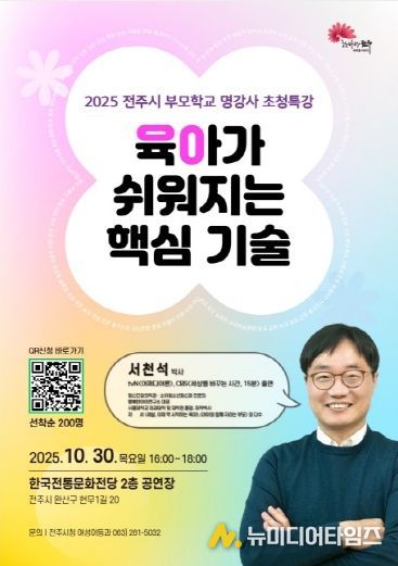 이번 특강은 유아 및 초등학생 자녀를 둔 학부모 200명을 대상으로 무료로 진행되며, 참여를 원하는 학부모는 전주시 누리집 및 네이버폼(QR코드)을 통해 선착순 신청하면 된다.