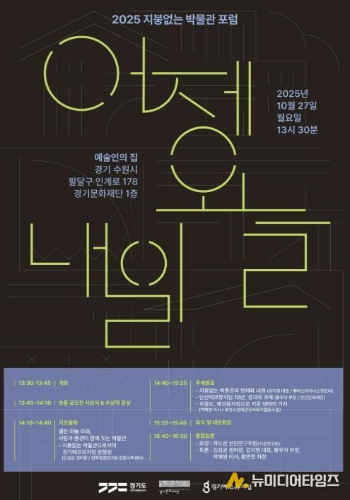 경기도와 경기문화재단은 일상 곳곳의 발자취를 ‘박물관’으로 만드는 지붕없는 박물관(경기에코뮤지엄)사업의 '2025 지붕없는 박물관 포럼_어제·오늘·내일'을 10월 27일 오후 1시 30분 경기문화재단 예술인의 집(수원)에서 개최한다.