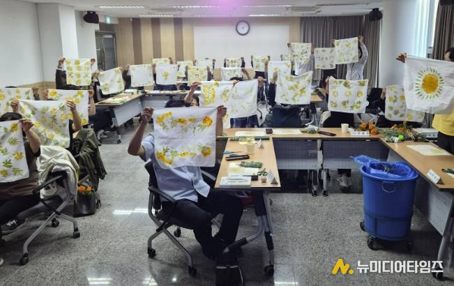 이번 교육은 직장인들의 환경 문제에 대한 이해를 높이고, 일상에서 실천할 수 있는 친환경 활동을 체험해 보는 데 목적을 두고 진행됐다. 천연염색에 대한 강의를 시작으로, 허브 스머지스틱 만들기, 보자기 염색 체험 등 다양한 실습 프로그램이 운영됐다.