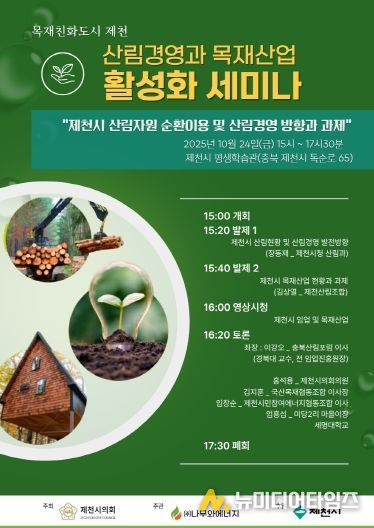 제천시의회은 오는 10월 24일, 제천시 평생학습관에서 ‘목재친화도시 제천의 산림경영과 목재산업 활성화 세미나’를 개최한다.