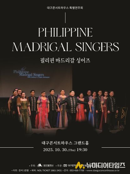 오는 10월 30일 오후 7시 30분, 대구콘서트하우스 그랜드홀에서는 세계 최정상의 아카펠라 합창단 ‘필리핀 마드리갈 싱어즈(Philippine Madrigal Singers)’가 천상의 목소리로 대구를 물들인다. 이번 공연은 대구콘서트하우스가 기획한 합창공연으로 아시아 각국을 순회하는 필리핀 마드리갈 싱어즈의 글로벌 투어 중 가장 주목받는 일정으로 꼽히고 있다.
