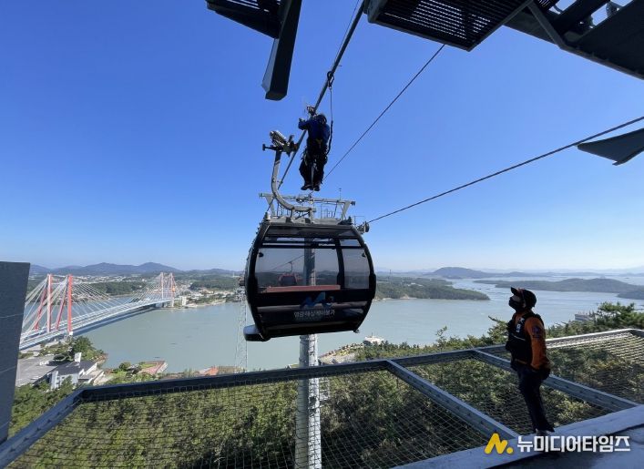현장은 긴장감 속에서도 질서정연했다. 구조대는 접근 경로와 진입 순서를 차근히 점검하며, 현장 안전선 확보와 인명 이송 동선을 꼼꼼히 확인했다. 명량해상케이블카 직원들은 비상 방송과 무전으로 상황을 전파하고, 운행 통제 및 탑승객 안내를 동시에 수행하며 숙지 된 내부 매뉴얼대로 직원들이 움직이는지를 점검했다.