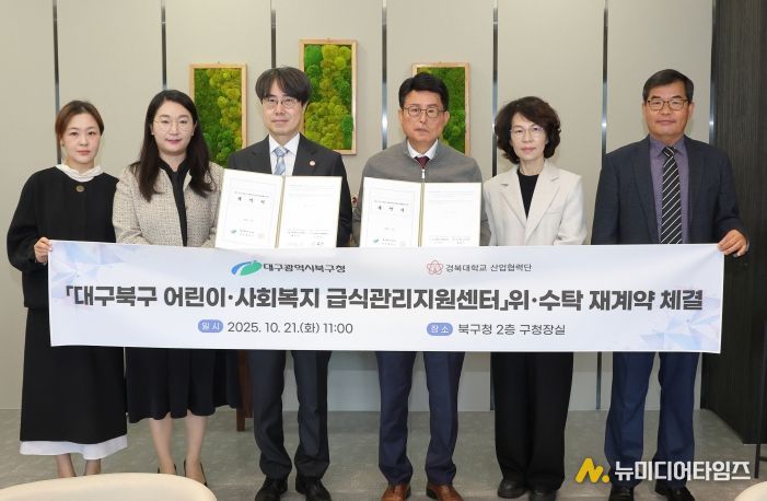 대구 북구청은 10월 21일 11시 구청장집무실에서 경북대학교 산학협력단(단장 김규만)과 대구 북구 어린이·사회복지급식관리지원센터 위탁․운영에 관한 계약을 체결했다.