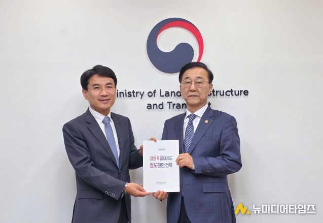 김진태 강원특별자치도지사는 10월 21일 서울국토발전전시관에서 김윤덕 국토교통부 장관을 만나 제5차 국가철도망 구축계획에 강원도가 신청한 10개 신규 철도사업의 최대 반영을 요청했다.