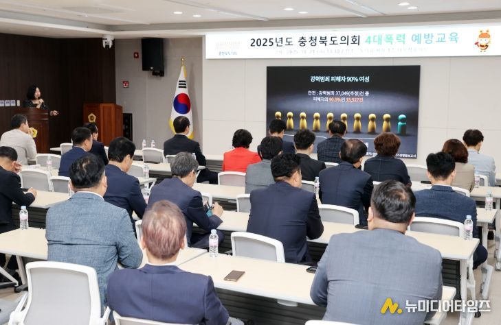 충북도의회는 21일 의회 다목적 회의실에서 의원 및 간부 공무원 등 50여 명을 대상으로 4대 폭력 예방교육을 실시했다.