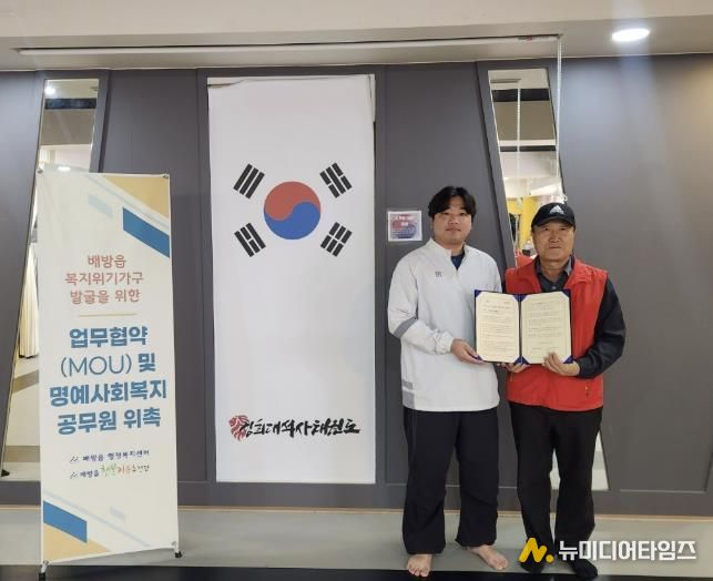 아산시 배방읍 행복키움추진단은 지난 20일 공수리에 위치한 경희대 석사 태권도학원(대표 박초롱)과 위기가구 발굴을 위한 업무협약을 체결했다.