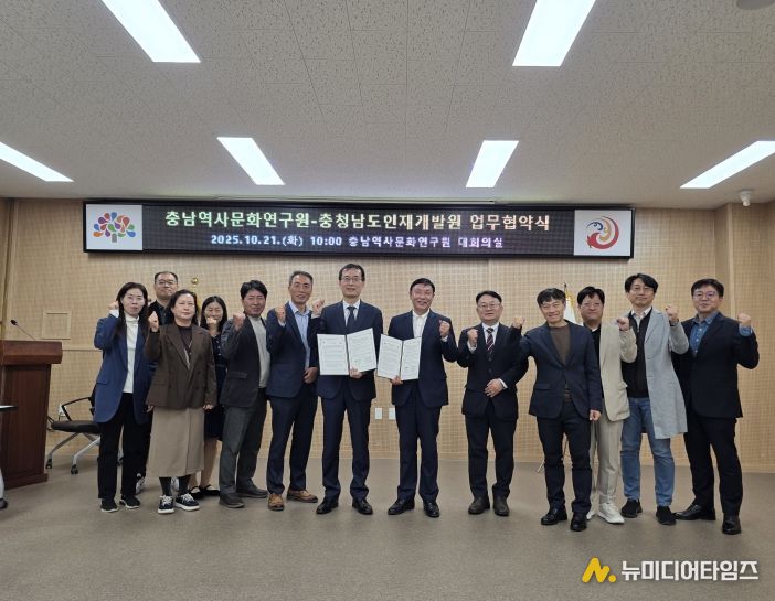 충남인재개발원과 충남역사문화연구원은 21일 연구원 대회의실에서 지역 인재 양성 및 역사·문화 가치 확산을 위한 업무협약을 체결했다.