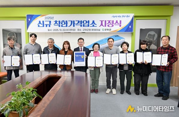 군위군은 10월 22일 군위군청 제1회의실에서 지역 물가안정과 소비자 부담 완화를 위해 ‘착한가격업소 지정식’을 개최했다.