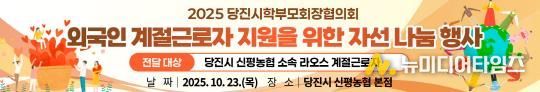 충청남도당진교육지원청은 당진시학부모회장협의회와 함께 지역 농업에 기여하는 외국인 계절근로자를 위한 '자선 나눔 행사'를 추진한다고 밝혔다.