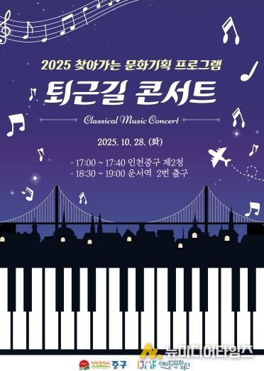(재)인천중구문화재단(이사장 김정헌)은 오는 28일 저녁 퇴근길 시민들을 위한 특별한 문화 행사 ‘2025 영종 퇴근길 콘서트’를 개최한다.