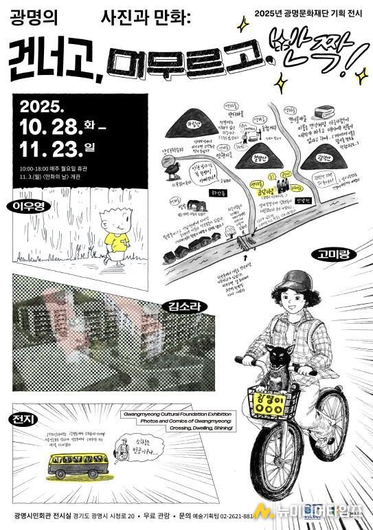 (재)광명문화재단은 사진과 만화를 통해 광명의 역사와 현재를 기록하는 전시 '광명의 사진과 만화: 건너고, 머무르고, 반짝!'을 오는 10월 28일부터 11월 23일까지 광명시민회관 전시실에서 선보인다.