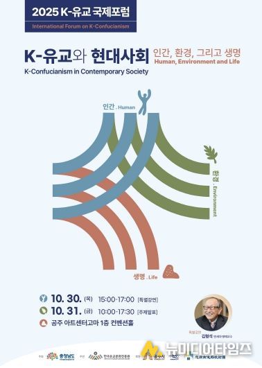 충청남도가 주최하고 한국유교문화진흥원이 주관하는 '2025 K-유교 국제포럼'행사가 오는 10월 30일부터 31일까지 이틀에 걸쳐 공주시 아트센터 고마(충청남도 공주시 고마나루길 90)에서 열린다.