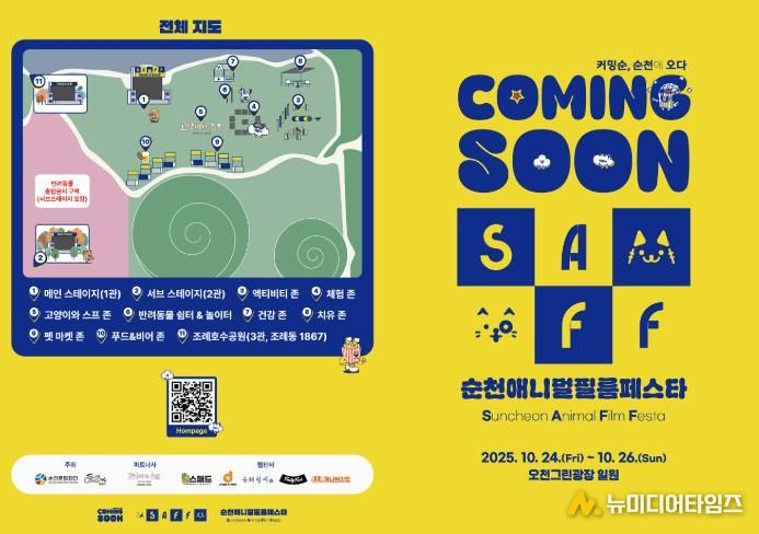 순천시와 순천문화재단에서 오는 24일부터 26일까지 3일간, 반려동물과 함께 즐길 수 있는 특별한 야외 영화축제 ‘2025 순천애니멀필름페스타(SAFF)’를 공동으로 개최한다.