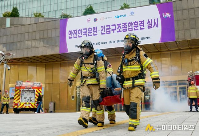 현장에서는 동대문소방서, 한화커넥트, 코레일, 군부대 등 11개 유관기관과 민간단체 600여 명이 참여해 징후 감지, 초기 대응, 비상 대응, 수습 복구, 강평 및 격려 순으로 약 1시간 30분간 훈련을 펼쳤다.