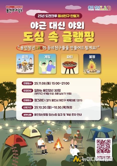 처인구 소재 글램핑장에서 미혼 직장인을 대상으로 개최할 ‘야근 대신 야외, 도심 속 글램핑’ 행사는 직장인 청년들 간의 소통과 네트워킹을 지원하고 일과 삶의 균형을 도모하도록 돕기 위해 마련됐다.