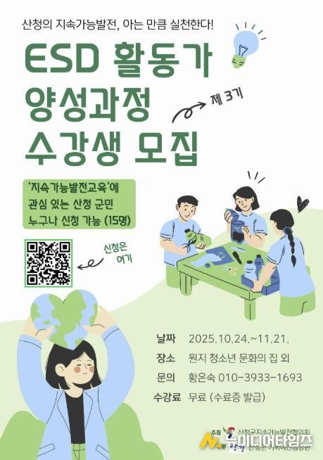 산청군지속가능발전협의회는 24일 ‘ESD(지속가능발전교육) 활동가 양성과정 제3기’ 운영에 돌입했다고 밝혔다.