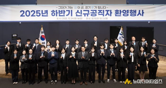 경기도는 24일 도청에서 올해 상반기 임용된 신규 공직자 30명에게 공무원증과 환영꾸러미를 전달하고, 이들의 공직 첫걸음을 축하하는 ‘2025 하반기 신규 공직자 환영행사’를 열었다.