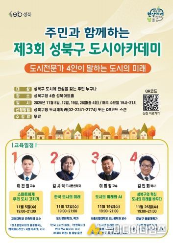 서울 성북구가 우리나라를 대표하는 도시 전문가 4인을 초빙해 도시의 모든 것을 알려주는 ‘제3회 성북구 도시아카데미’를 진행한다.