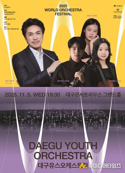 (재)대구문화예술진흥원 대구콘서트하우스는 오는 11월 5일 저녁 7시 30분, 그랜드홀에서 ‘2025 월드오케스트라페스티벌’의 일환으로 대구유스오케스트라의 공연을 개최한다.