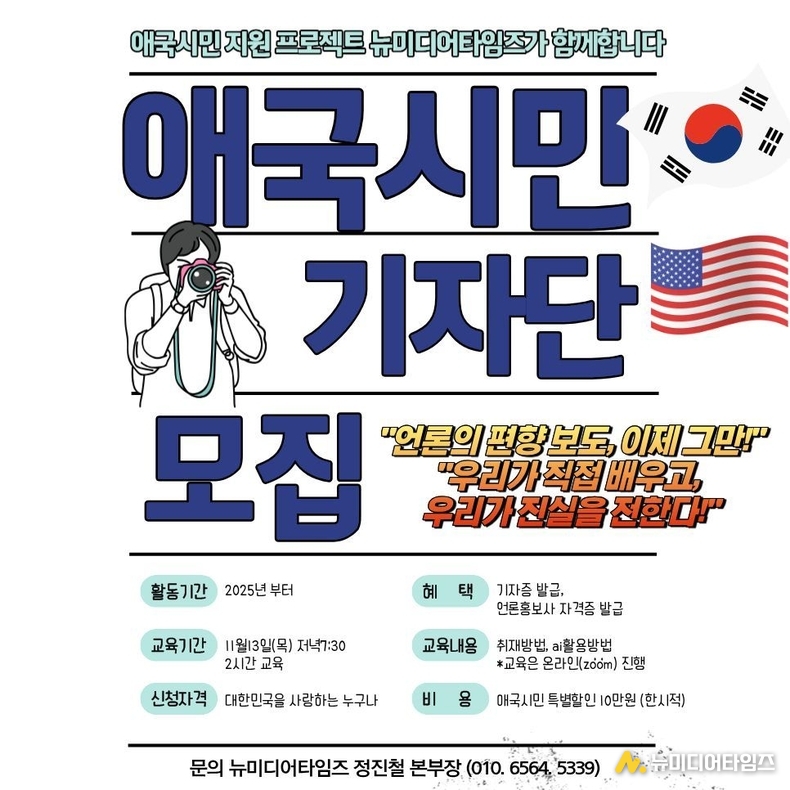 기존 언론의 편향 보도에 대한 시민들의 우려가 높아지는 가운데, 뉴미디어타임즈가 일반 시민을 대상으로 한 '애국시민 기자단 양성 프로그램'을 선보인다.