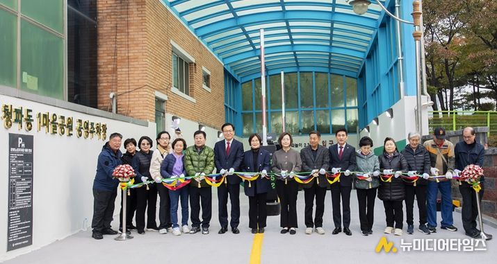 박희영 서울 용산구청장이 31일 청파동1마을공원 공영주차장 시설개선공사 준공식에 참석해 주민들과 함께 완공을 축하했다.