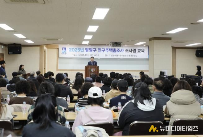 수원시 팔달구는 지난 10월 31일, 영동시장 소재 28청춘몰 영동아트홀에서 조사원 121명을 대상으로 ‘2025년 인구주택총조사 조사원 사전준비 교육’을 실시했다.