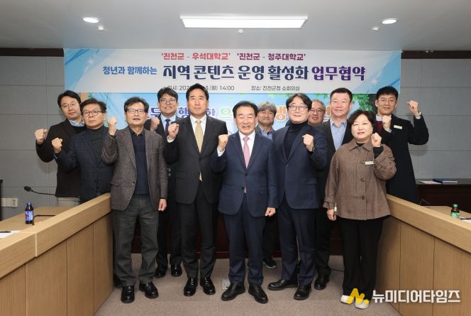 충북 진천군과 우석대학교, 청주대학교는 3일 진천군청에서 ‘진천군 지역 콘텐츠 운영 활성화’를 위한 업무협약을 체결했다고 밝혔다.