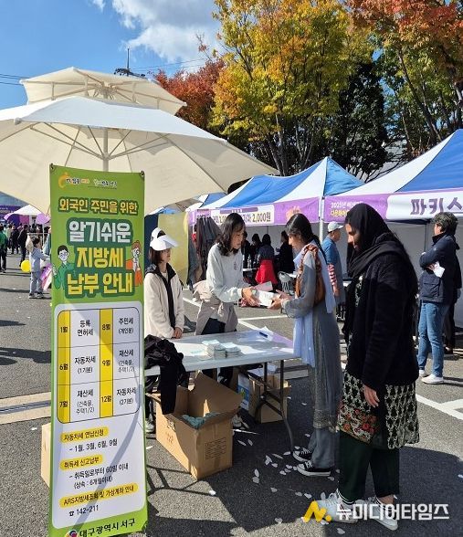 대구 서구청은 지난 11월 1일, 비산7동 ‘다문화 어울림 한마당’ 행사와 연계하여 외국인 주민을 대상으로 ‘알기 쉬운 지방세’ 홍보 활동을 펼쳤다고 밝혔다.