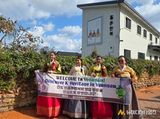 영암군이 1일 구림한옥마을에서 인도 인플루언서 등이 참여하는 ‘한복입고 유유자적’ 행사를 진행했다.
