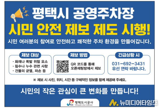 2025년 7월, 평택도시공사가 공영주차장의 보다 안전한 환경 조성을 위해 시민 참여형 『시민 안전 제보 제도』를 본격 시행한다.