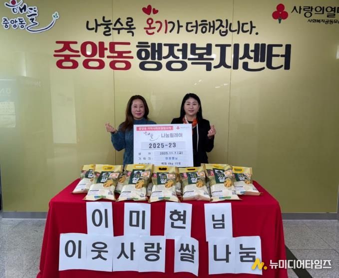 백경희 중앙동장은 “지역의 어려운 가정을 위해 따뜻한 마음을 나눠주신 것에 감사드린다”며, “주민들의 따뜻한 나눔이 지역사회 전반으로 확산될 수 있도록 촘촘한 지역 돌봄체계를 구축해 나가겠다”고 밝혔다.