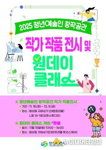 창원특례시는 오는 11월 15일 합성동 지하상가(대현프리몰)에서 청년예술인 창작공간 입주 작가들의 성과 공유를 위한 작품 전시회와 시민과 함께 창작의 즐거움을 나누는 원데이클래스를 개최한다고 밝혔다.