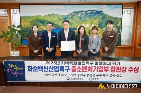 화순군은 중소벤처기업부에서 실시하는 '2025년도 지역특구 운영 성과 평가에서 화순백신산업특구가 ‘우수 특구’로 선정돼 중소벤처기업부 장관상의 영예를 차지했다고 10일 밝혔다.