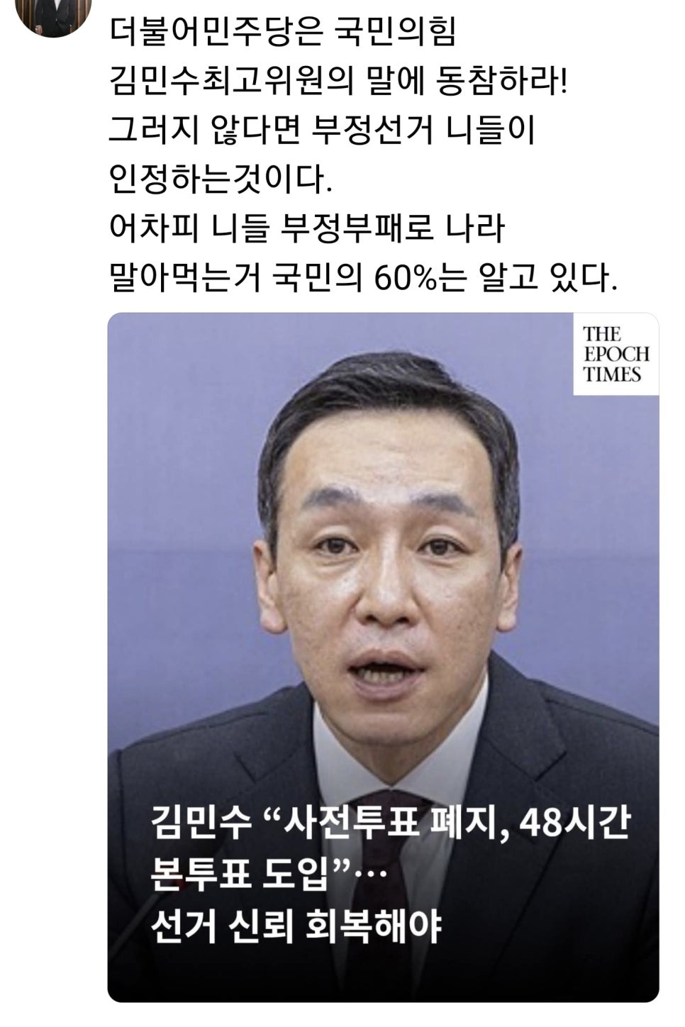 “민주당이 김민수 최고위원의 지적에 동참하지 않는다면, 그것은 정권의 부정적 의혹을 사실상 인정하는 것과 다름없다.”