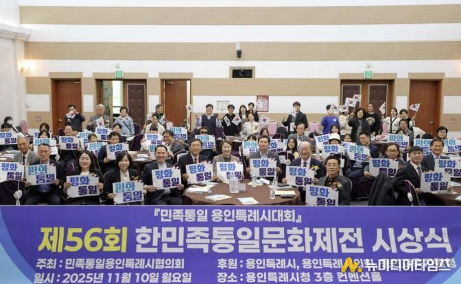 용인특례시는 10일 시청 컨벤션홀에서 민족통일 용인특례시협의회 주관으로 ‘민족통일 용인특례시대회와 제56회 한민족통일문화제전 시상식’이 열렸다고 밝혔다.