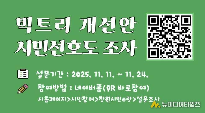 창원특례시는 11월 11일부터 24일까지 2주간 ‘빅트리 개선안 시민 선호도 조사’를 실시한다.