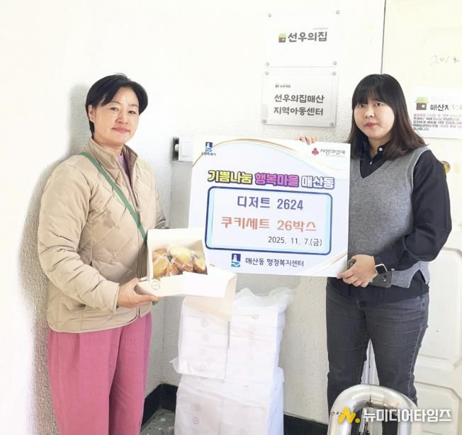 이번 후원은 매산동 지역사회보장협의체 위원이자 ‘디저트 2624’를 운영 중인 안정빈 대표의 재능기부로 마련됐으며, 행정복지센터는 후원받은 쿠키를 선우의집 매산지역아동센터에 전달해, 아이들이 간식 시간에 따뜻한 마음과 함께 달콤한 간식을 즐길 수 있도록 했다.