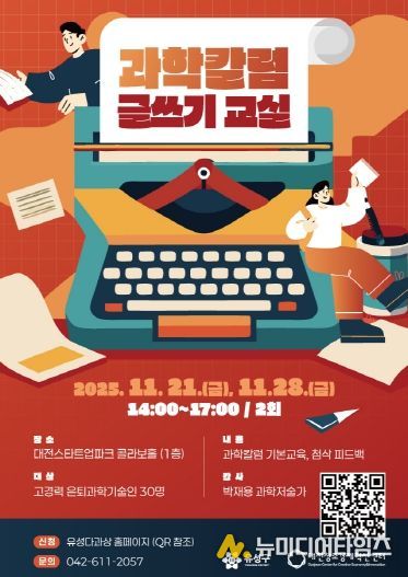 대전 유성구는 오는 21일과 28일 대전스타트업파크센터에서 고경력 은퇴 과학기술인 대상 ‘과학 칼럼 글쓰기 교실’을 운영한다.