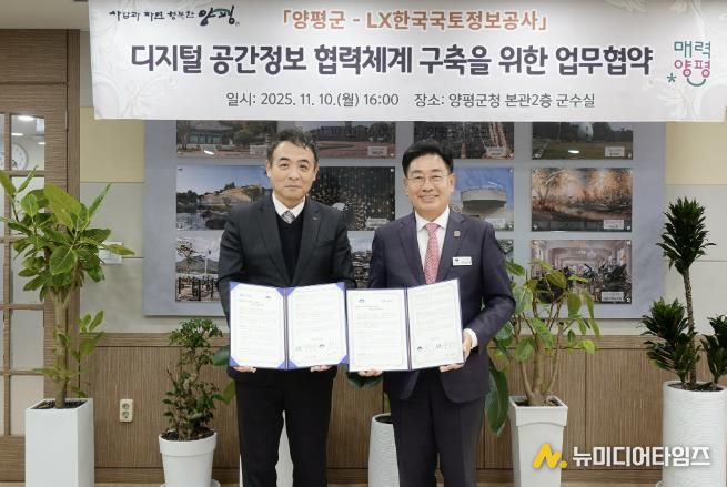 양평군은 지난 10일 LX한국국토정보공사와 ‘디지털 공간 정보 협력체계 구축을 위한 업무협약(MOU)’을 체결하고, 군민이 체감할 수 있는 스마트 행정 서비스 확대에 나섰다.