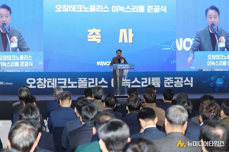 ㈜이녹스리튬은 11일 청주 오창테크노폴리스 산업단지에서 이녹스리튬 오창공장 준공식을 개최했다. 이날 준공식에는 김경훈 이녹스리튬 대표이사, 장경호 이녹스 회장, 김영환 충북도지사, 신병대 청주부시장 등 150여 명이 참석했다.