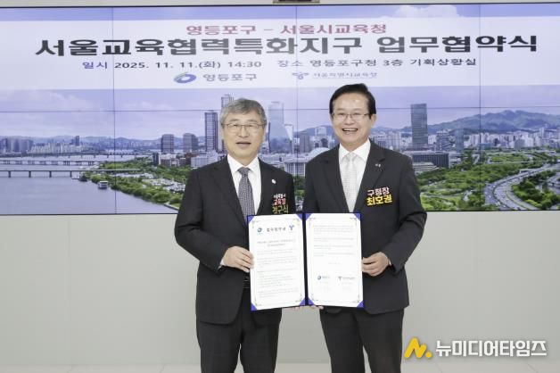 영등포구가 지난 11월 11일 서울시교육청과 ‘영등포 교육협력 특화지구’ 및 ‘스쿨매니저 시범 사업’ 추진을 위한 업무협약(MOU)을 체결했다고 밝혔다.