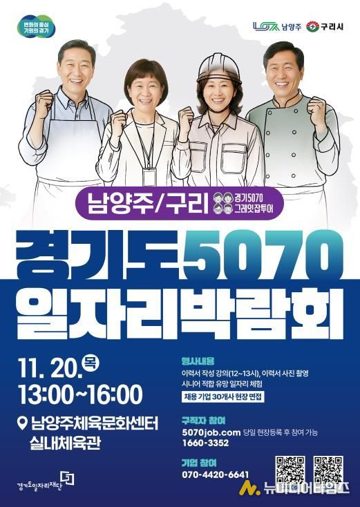경기도와 경기도일자리재단이 11월 20일 남양주체육문화센터에서 ‘경기도 5070 일자리박람회 in 남양주+구리’를 개최한다.